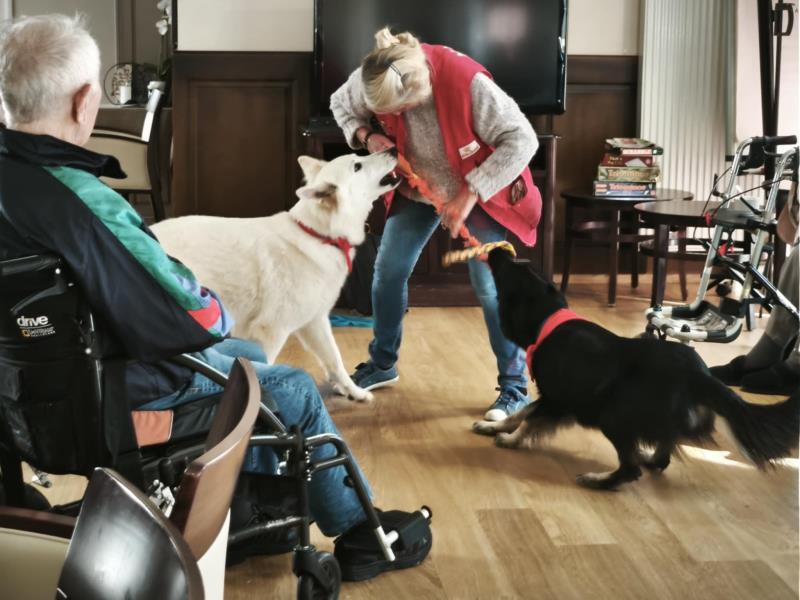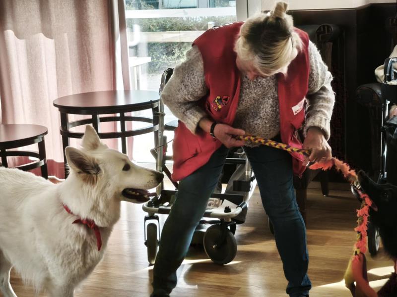 Chaque mois, la visite de ces compagnons à quatre pattes est source de réconfort pour les résidents.