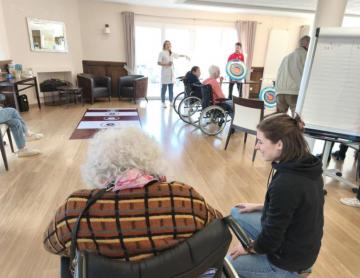 Les étudiantes ont participé au jeu "Qui veut gagner des millions". Nous avons fait deux équipes avec les résidents ce qui a permis de créer un dynamisme certain avec un petit esprit de compétition.