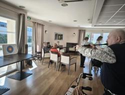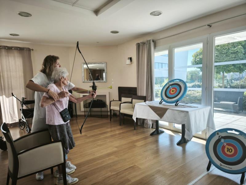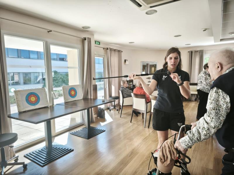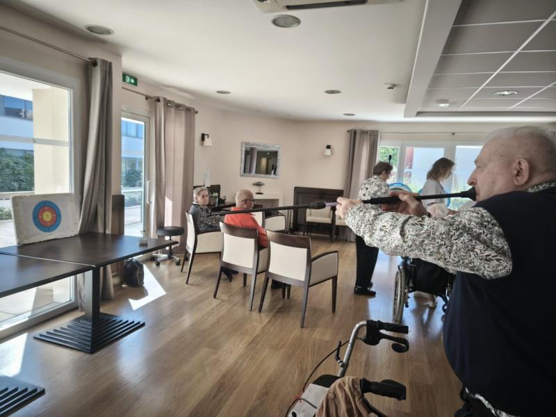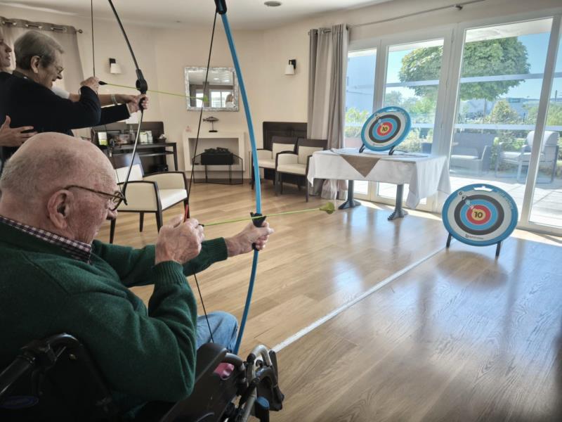 A la Résidence Valmy, nous avons eu le plaisir d'accueillir le Comité Handisport de Côte-d'Or qui propose des activités physiques et sportives spécialement adaptées aux personnes en situation de handicap. L'intervenante, Laure, a ainsi fait découvrir aux résidents plusieurs disciplines accessibles et ludiques : le tir à l'arc, la sarbacane et la boccia.