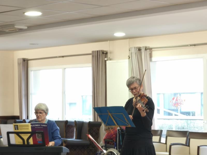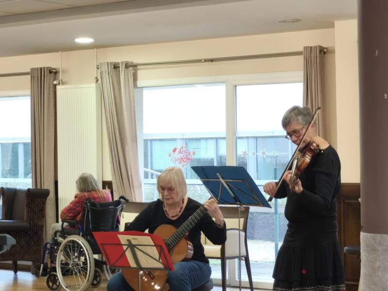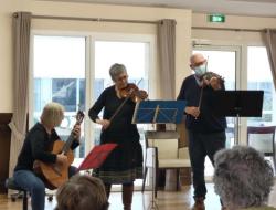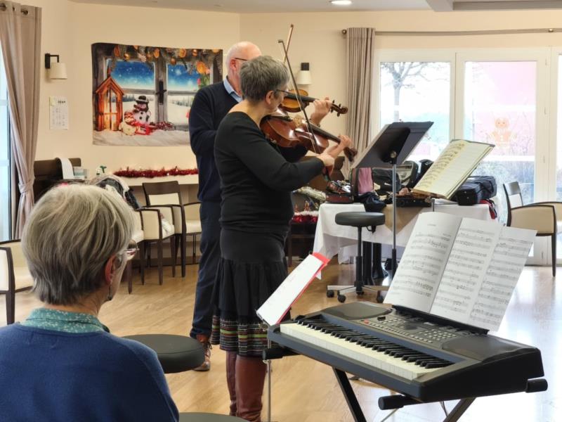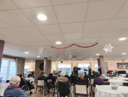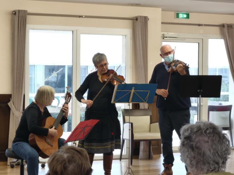 Le 12 décembre, l'association des musiciens amateurs nous a offert un instant musical qui a ravi tous les spectateurs. Au programme : un trio de cordes (guitare, violon, alto) et des duo avec le piano qui ont interprété des morceaux de musique classique, irlandaise...Merci à tous ces musiciens, pas si amateurs que ça, qui interviennent bénévolement pour le plus grand plaisir des résidents !